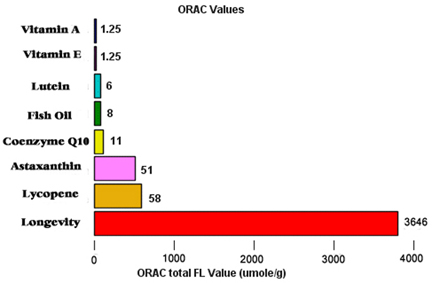 Jayson: We don’t feel that taking dozens of supplements every day the best method to live a healthier life so we created Rejuvenator 6X so that the best of these powerful antioxidants could be combined into one product for ease of use. Our main focus was to make sure the ORAC value which we talked about earlier was as high as possible. So to give you an idea of the powerful potency of Longevity here are some numbers for you. Rejuvenator 6X ORAC rating per 1 gram is 3646.